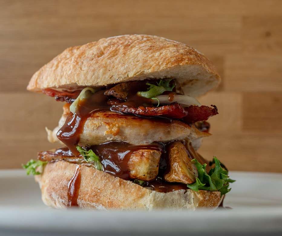 saftiges Rindfleisch, Smashsauce, Röstzwiebeln, Karamellisierte Zwiebeln, Mixsalat, Käse, Tomate